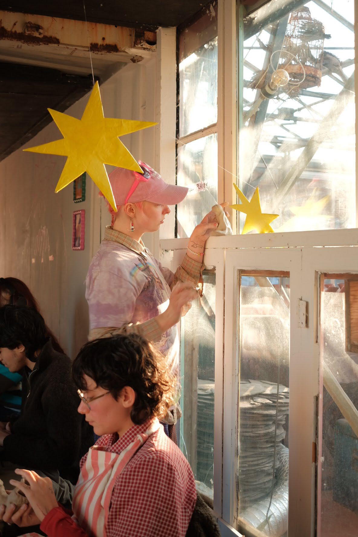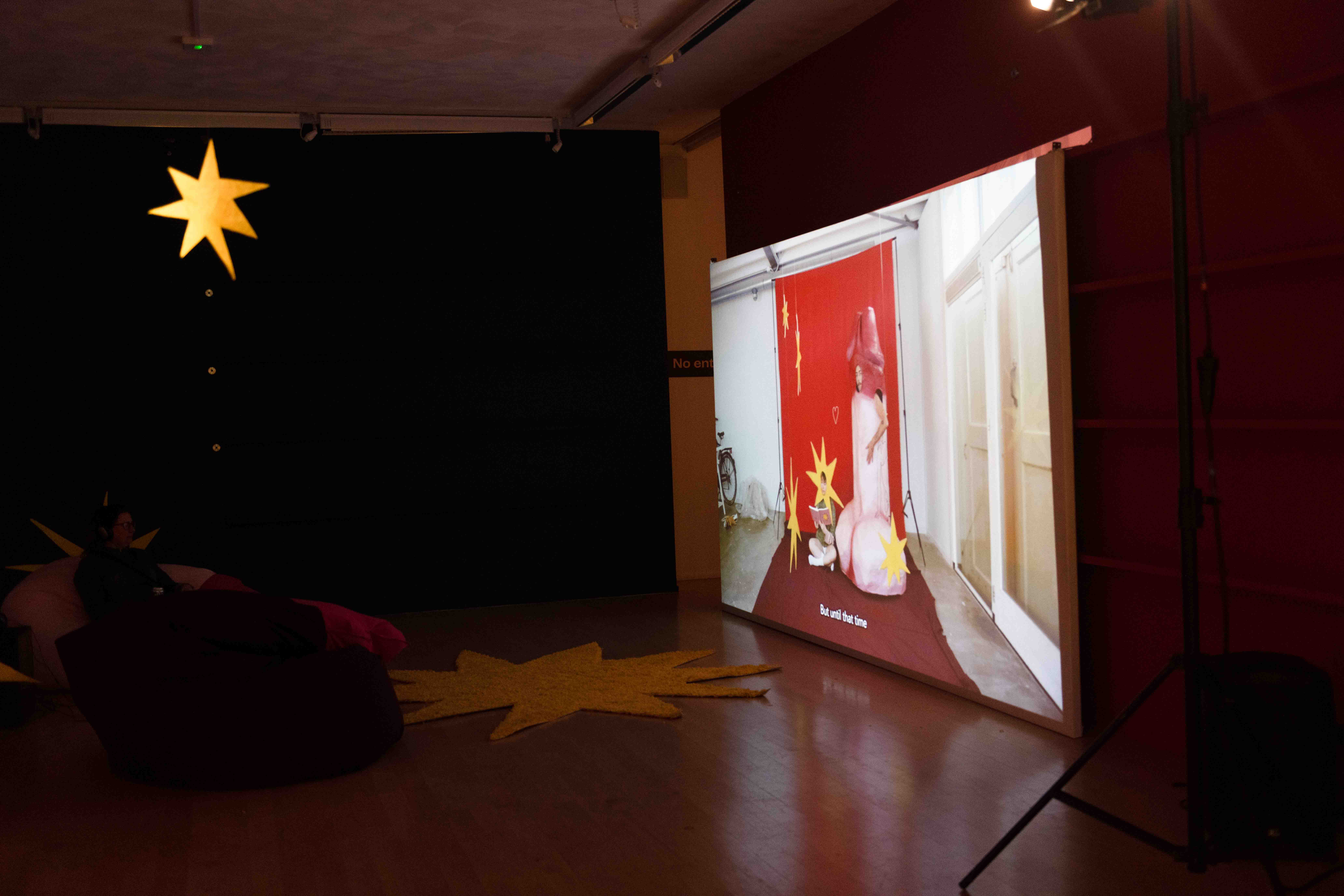 speeltuin van taal, video, textiel, felgele sterren en